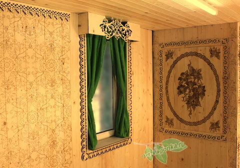 Наличники с рисунком для бани мы производим из двух видов древесины: липа и осина. Наличники с рисунком других видов мы производим по предварительной договорённости.